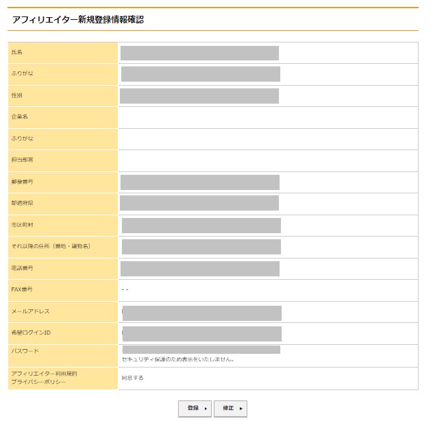 確認画面が表示されます。内容を確認して問題がなければ「登録」ボタンをクリック。