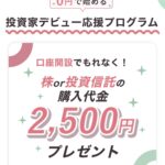 今なら口座開設するだけで、2,500円分の株または投資信託をタダでもらえます。せっかくなのでポイントとは別にお金をゲットしちゃいましょう。